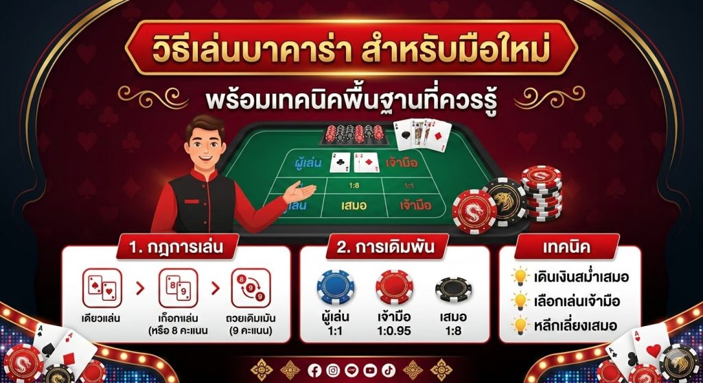 สำหรับผู้ที่ยังไม่เคยเล่นบาคาร่า บทความนี้จะช่วยอธิบายวิธีการเล่น กติกา และแนวทางเบื้องต้นที่ควรรู้ก่อนเริ่มเล่น เพื่อให้สามารถเข้าใจเกมได้ง่ายขึ้น